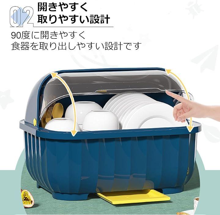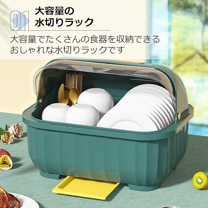 Dish drainer rack, dish storage, dish drainer basket, kitchen utensils, drying box, large capacity, water tray, with lid