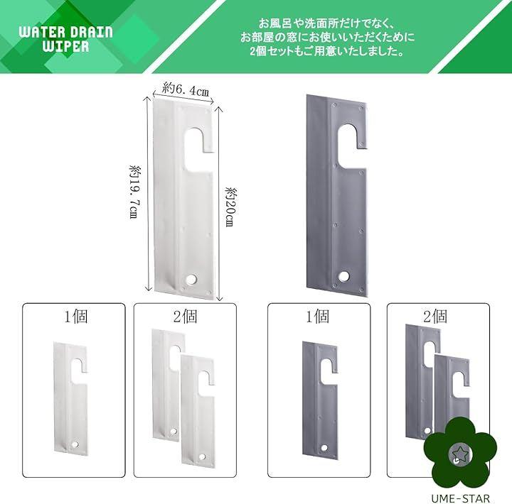 バスミラーや洗面所の鏡、窓ガラスにお使いいただいても傷つけることのない柔らかいシリコンのワイパー部分と持っていてもしっかりしてる持ち手側を一体となった構造です。