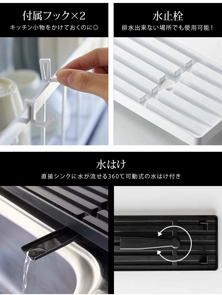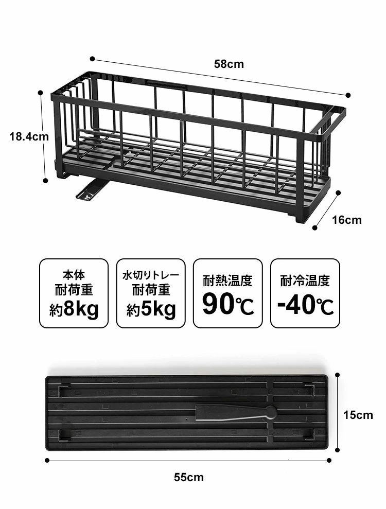 ■素材本体:スチール(ユニクロメッキ+粉体塗装)水切りトレー・カラトリーポケット・フック:ABS樹脂水はけ:ポリプロピレン水止栓:シリコーン