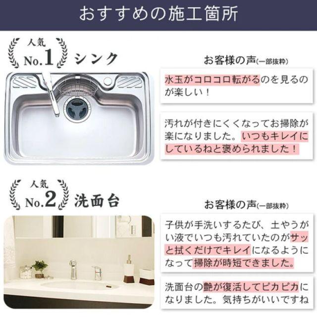 ★キッチンシンクや洗面台などの水回りに今人気急上昇の日本製、住居用コーティング剤です!!