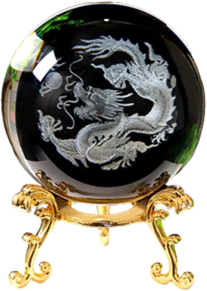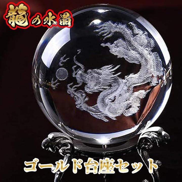 五爪の龍がデザインされたクリスタルオブジェと台座のセット。