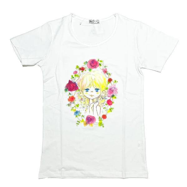 水森亜土の半袖プリントTシャツです。美しい女の子×バラのデザインがとってもキュート☆S、M、Lのサイズ展開となりますので家族やお友達とお揃いにしやすいのが嬉しい~♪1枚持っていれば便利に使えます☆彡【サイズ:LLサイズ(バスト:93~101cm、身長:154~162cm)】