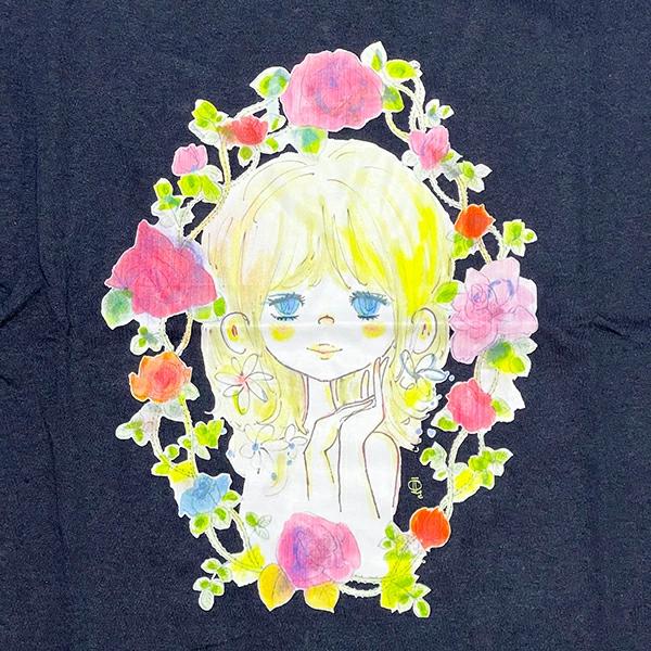 水森亜土の半袖プリントTシャツです。美しい女の子×バラのデザインがとってもキュート☆S、M、Lのサイズ展開となりますので家族やお友達とお揃いにしやすいのが嬉しい~♪1枚持っていれば便利に使えます☆彡【サイズ:Mサイズ(バスト:79~87cm、身長:154~162cm)】