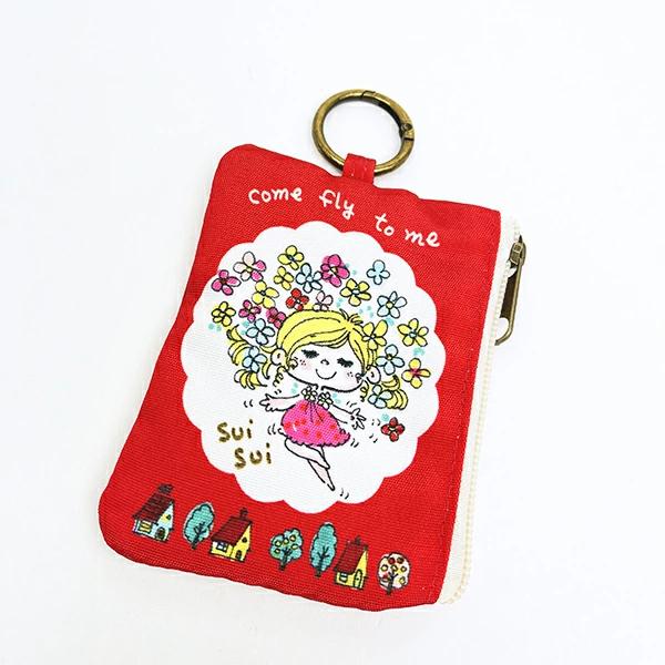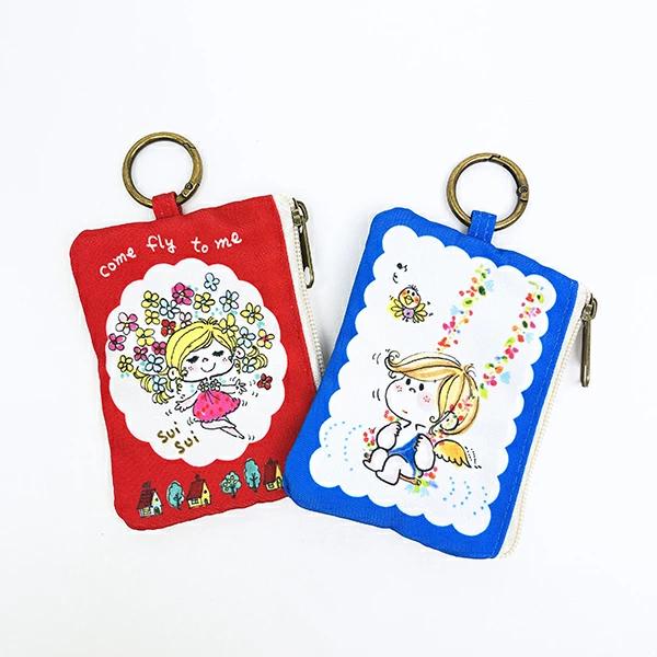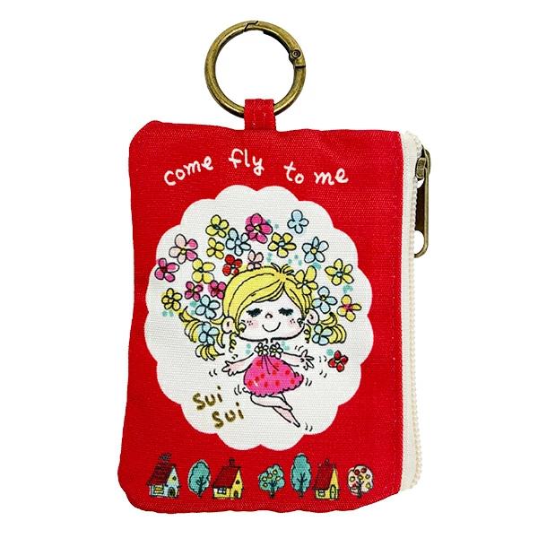 水森亜土のカラビナ付きポーチです。ICカードや小銭、ちょっとした小物を入れるのに便利☆カラビナ付きなのでバッグなどに付けて持ち運べます♪とっても可愛らしいデザインなので亜土ちゃん好きの方へのプレセントにもおすすめです☆彡