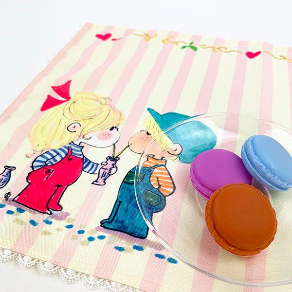 縁取りのイラストとレースが可愛いランチクロス。テーブルがパッと華やぎます♪コースターと合わせると更にかわいく!