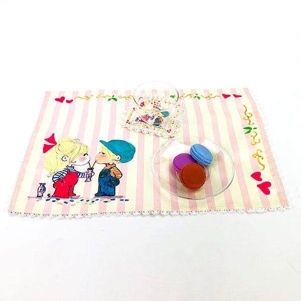 縁取りのイラストとレースが可愛いランチクロス。テーブルがパッと華やぎます♪コースターと合わせると更にかわいく!◆サイズ:31cm×44cm×0cm