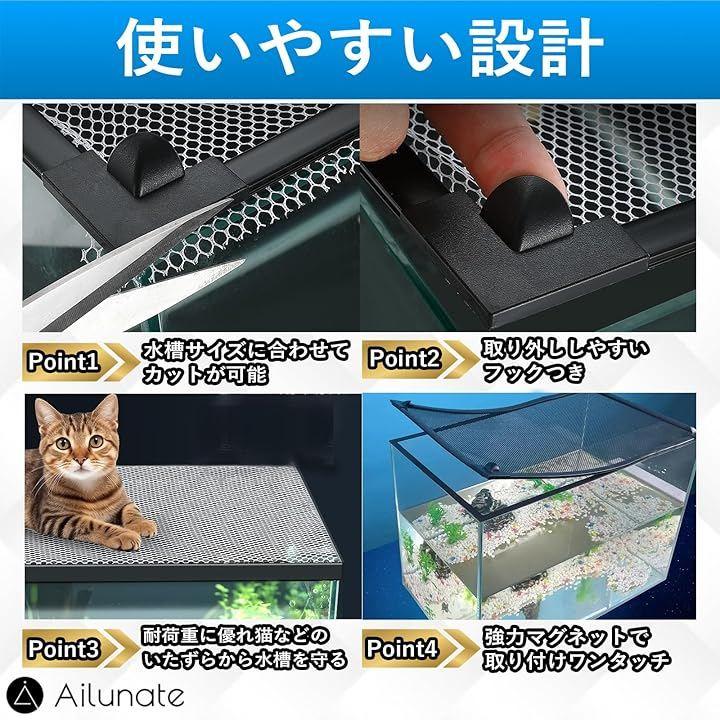 「脱走防止対策」魚やカメ、爬虫類などのペットが水槽から脱走するのを防ぎ、安全に飼育できます。