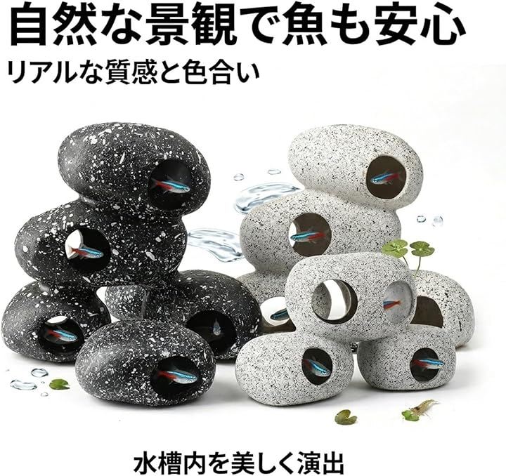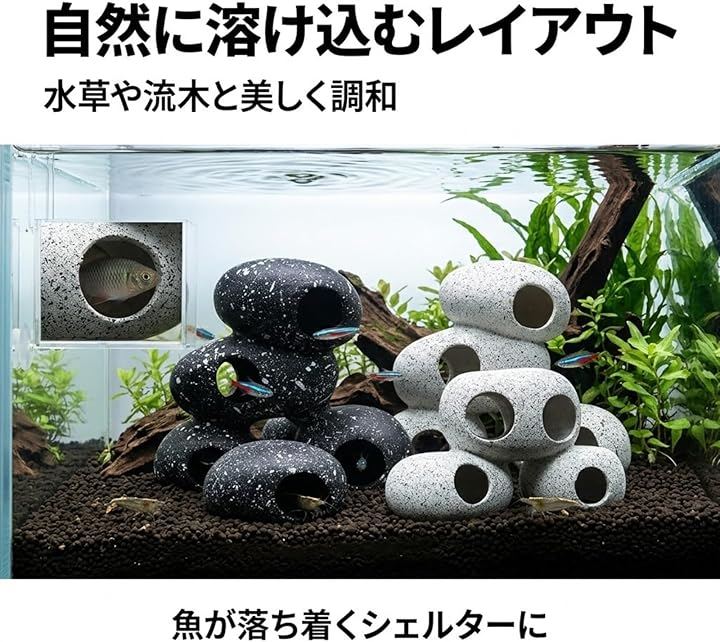 リアルな質感と色合いで、水草や流木などのレイアウトと自然に調和し、水槽内を美しく彩ります。