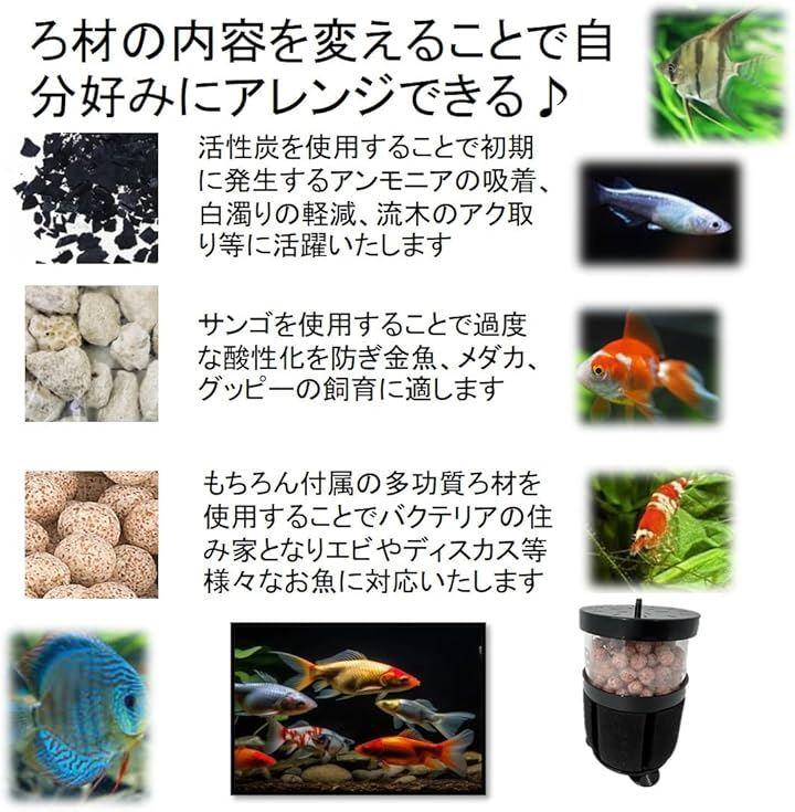 もちろん付属の多功質ろ材を使用することでバクテリアの住み家となりエビやディスカス等様々なお魚に対応いたします