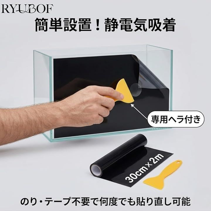 Aquarium Backdrop, Black, 2m, PVC, Durable, Repositionable, Enhances Aesthetics, Suitable for 60cm Aquariums