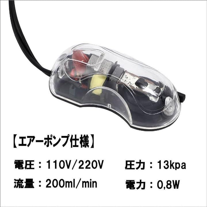 「商品内容」(1) 本体x2個(ろ材付属)(2) エアポンプx1式(エアチューブ付属)「フィルター本体サイズ」直径8.5cmx高さ14cm「エアーポンプ仕様」電圧:110V/220V・流量:200ml/min・圧力:13kpa・電力:0,8W「使用用途」・水槽内の有機粒子や有害な物質をろ過し、適切な水流を確保する「エアレーションについて」スポンジフィルターは、水槽に配置される際にエアーポンプと併用する必要があります。