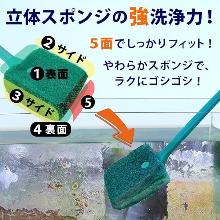 「選べる2サイズ&交換スポンジも」《ロングセット》全長:約39cm|深めの水槽でもしっかり届く安心設計。