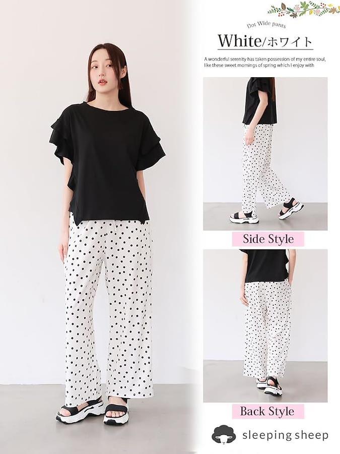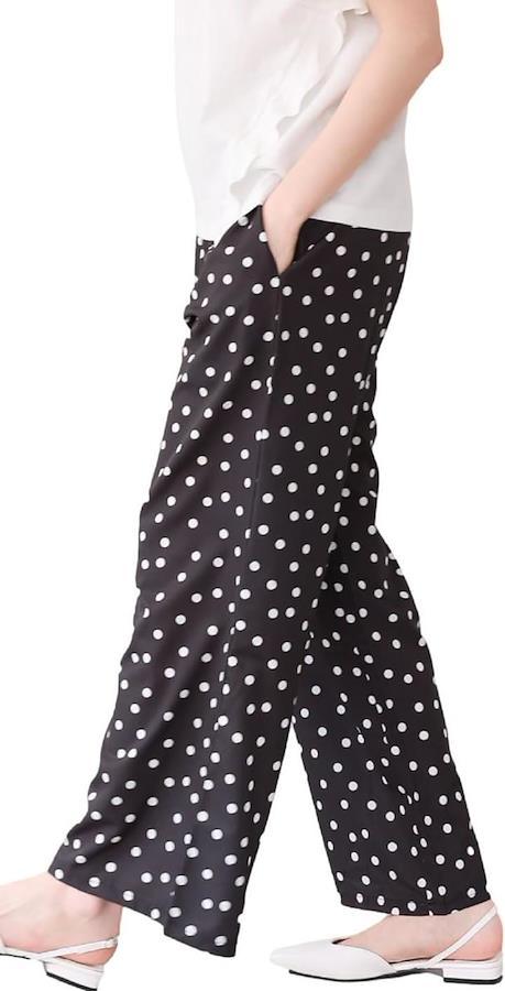 「デザイン」人気のドットパンツは、着回しやすいシンプルなブラック・ホワイトの2色展開とポケット付きがうれしいポイント。