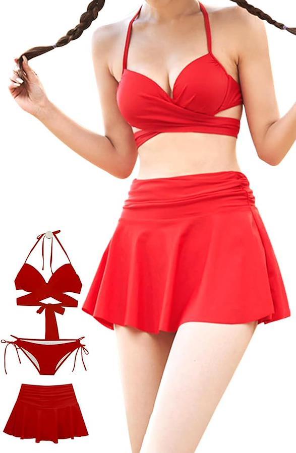 「ビーチで映える。大人かわいいビキニトップ」キュートとシック、どちらも楽しめる大人かわいいレディースセットアップスイムウェア3点セット。