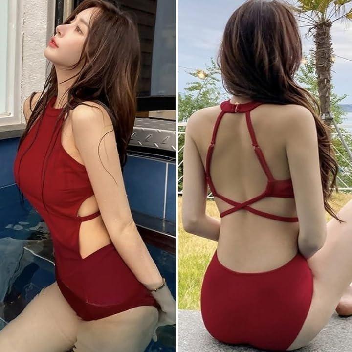 露出を抑えたフロントスタイルと大胆に背中見せできるバックスタイルとのギャップがセクシーな水着です。