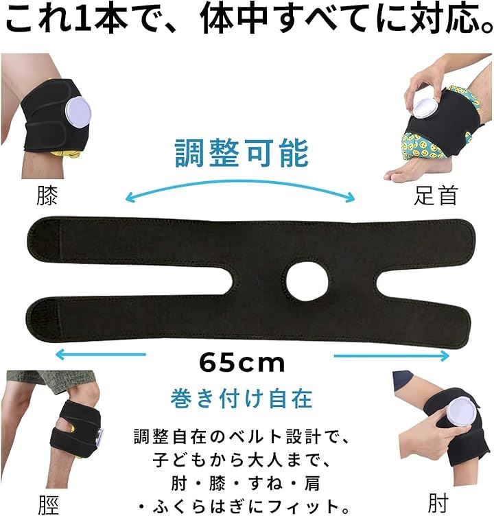 膝サポーターやアイスサポーターとして、これ1本で幅広く対応可能。