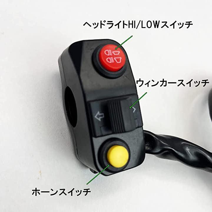 ・ウィンカースイッチ、ホーンスイッチ、ヘッドライトスイッチ、ロー/ハイビームが一体になった汎用の薄型タイプの左集中スイッチボックスです。