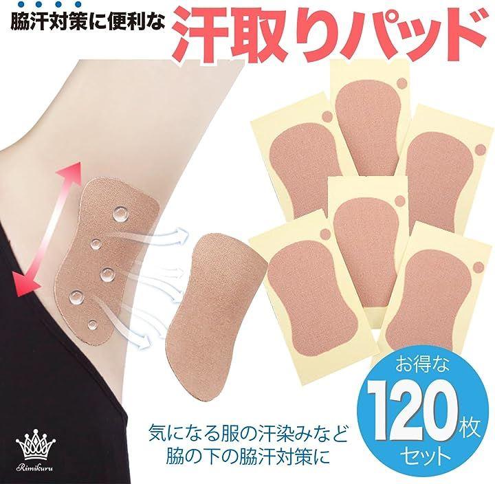 脇汗対策に便利な汗取りパッド お得な120枚セット:脇にペタッと貼るだけで汗染みや汚れを防げる汗取りシート ベージュのセットです。