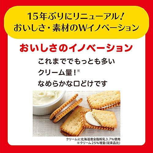 おいしくてつよくなる! 家族みんなを応援する乳酸菌クリームサンドです。北海道産ミルクを使ったクリームで、ミルクのコクを高め、さらに優しく・美味しくなりました。やさしい甘さのビスケットでサンドしています。なめらかな口どけのおいしさです。おなかで目覚めるスポロ乳酸菌と、食物繊維のうれしい組合せで、家族をサポートします。1袋5枚入りのちょっとした腹満たしにピッタリな食べきりサイズです。