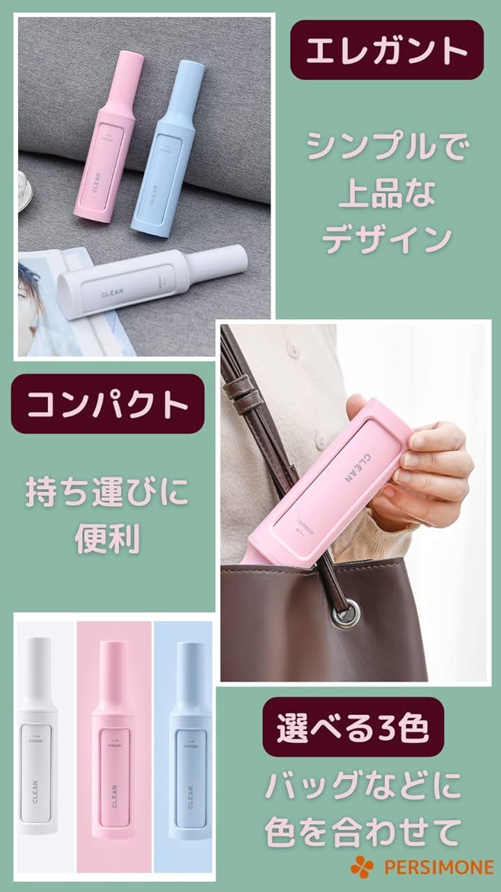 「携帯に便利」持ち運びに便利な大きさと軽さで、外出時のバックに入っていると何かと便利です(取れたホコリが見えないので、外出先でも気兼ねなくご使用ができます)
