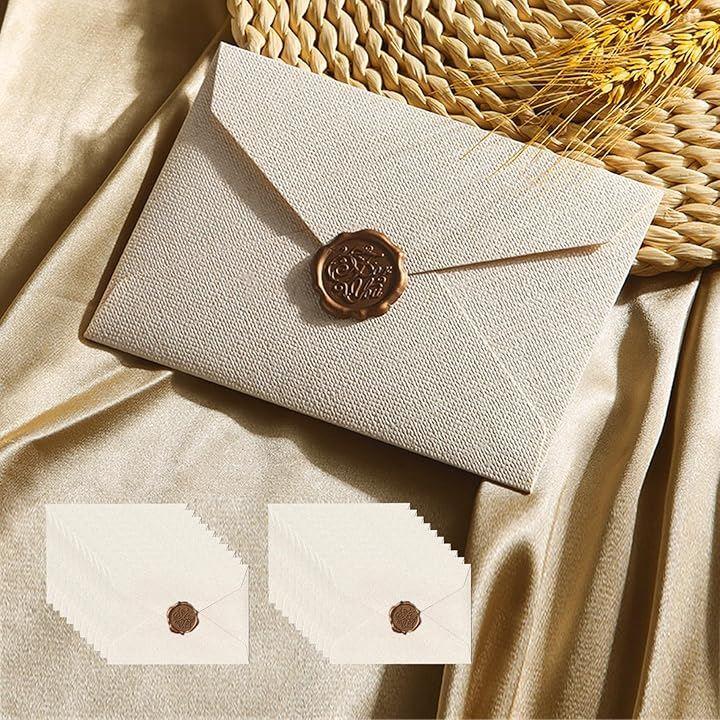 シンプルでエレガントな亜麻リネン紙素材、洋形2号封筒20枚セット。