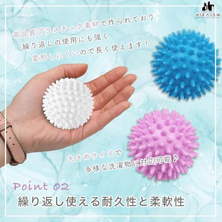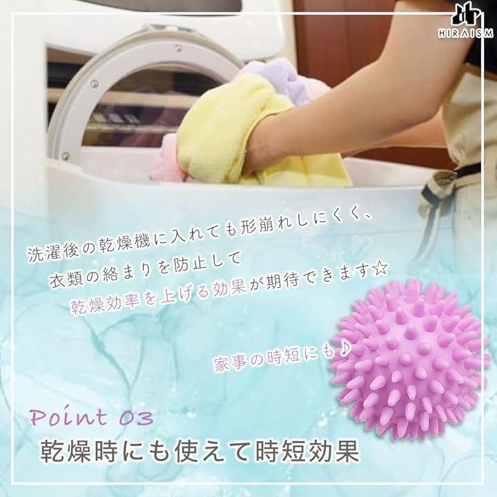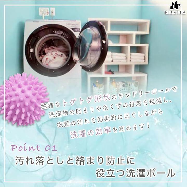 「汚れ落としと絡まり防止に役立つ洗濯ボール」独特なトゲトゲ形状のランドリーボールで洗濯物の絡まりや糸くずの付着を軽減し、衣類の汚れを効果的にほぐしながら洗濯の効率を高めます。