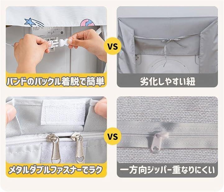 また、ファスナーやテープで簡単に取り付け・取り外しができるので、お洗濯のたびに手間がかかりません。