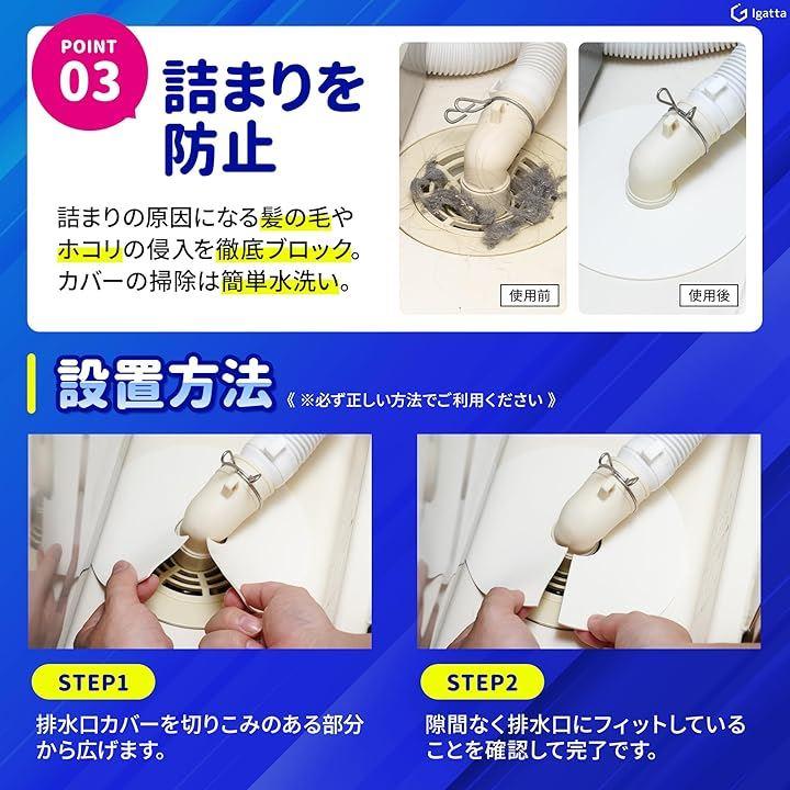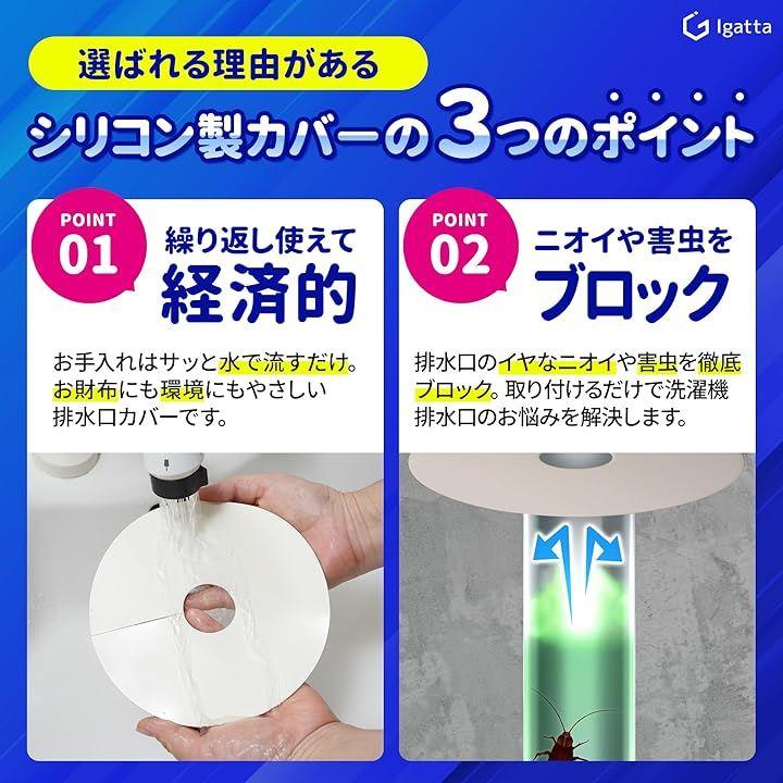 「洗濯機まわりのニオイが気になる」 「窓を閉め切っているのに室内に害虫が湧く」 「洗濯機排水口がすぐに詰まってしまう」 そんな方にぜひ一度お試しいただきたいのが、Igattaの洗濯機排水口カバーです。