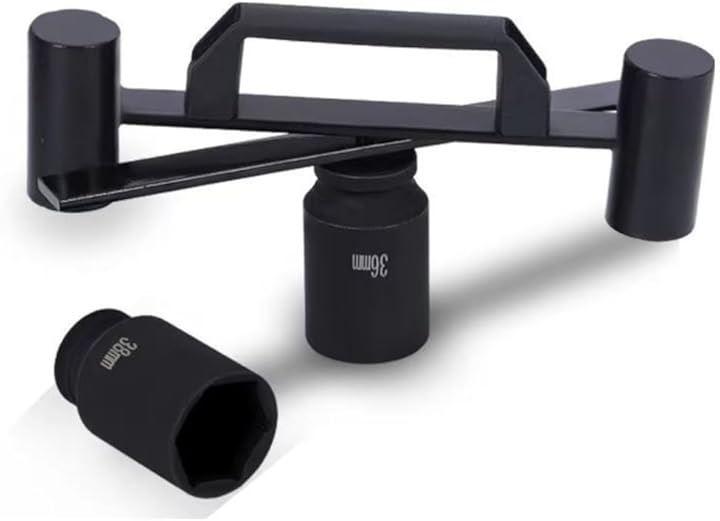 「36/38mmソケットで効率的に作業」 2サイズのソケットを搭載し、レバー原理を活かして固着したナットもラクに分解。