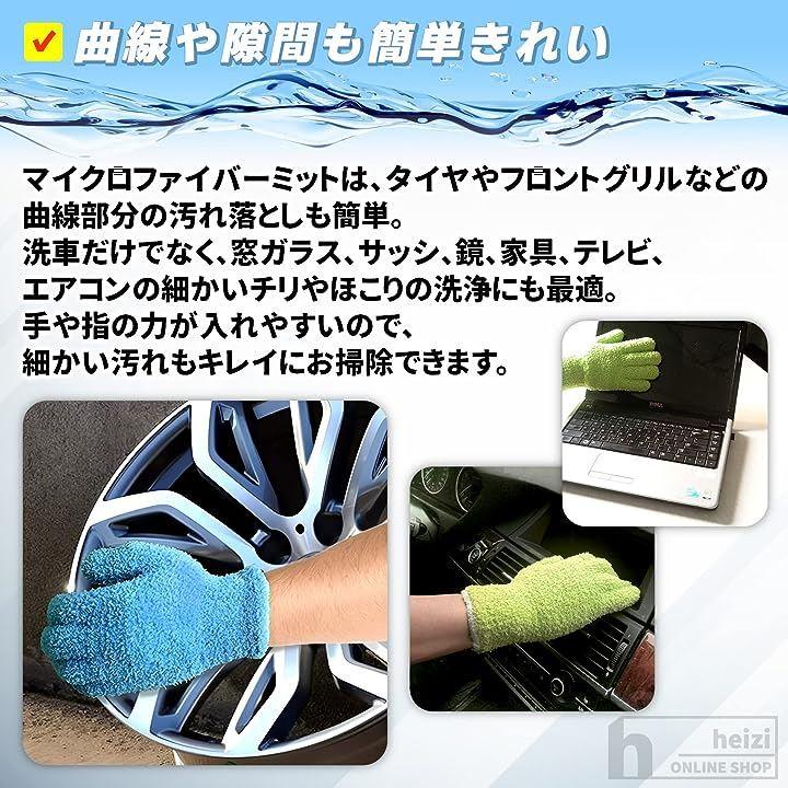マイクロファイバーミットは、タイヤやフロントグリルなどの曲線部分の汚れ落としも簡単。