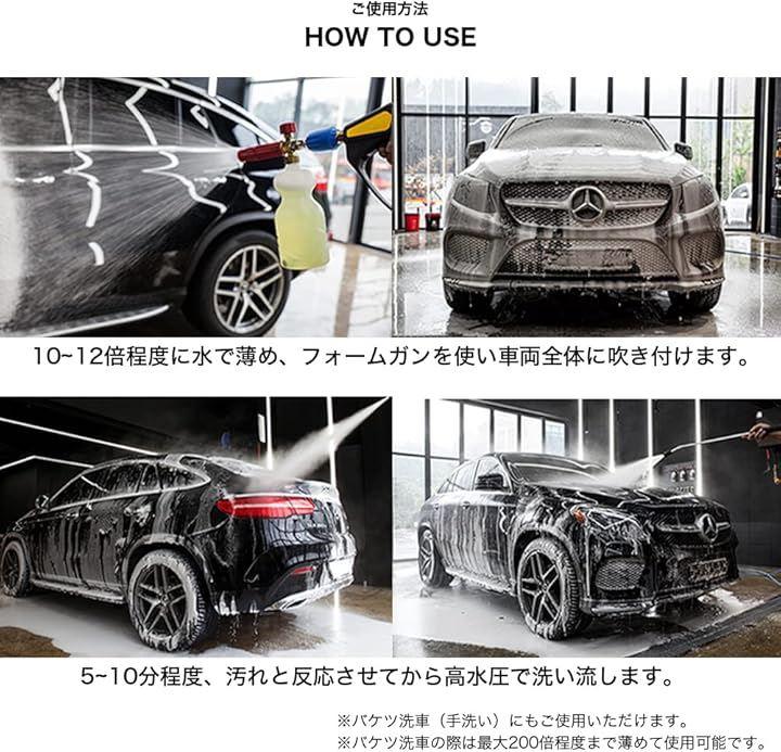 バケツ洗車用として使用される際は高い粘着力は不要なため、 スーパーフォームの濃度を薄くして最大1:200 (マジフォーム:水)の割合まで希釈して使用可能です。