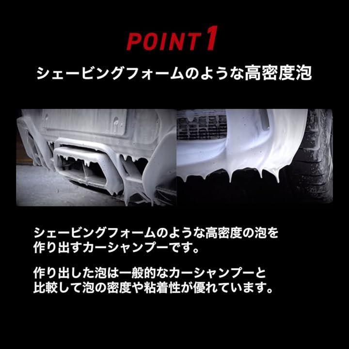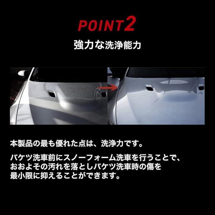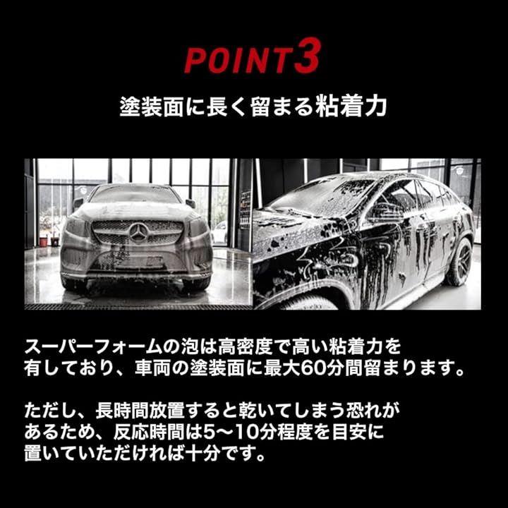 スノーフォーミングに最適化されたスーパーフォームの初は一般的なカーシャンプーと比較して泡の密度や粘着性が優れています。