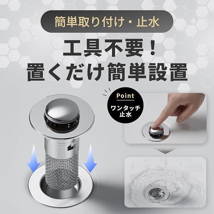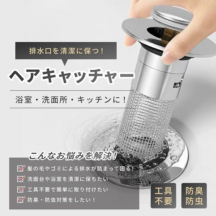 髪の毛やゴミの詰まりを防ぎ、排水口を清潔に保ちます。