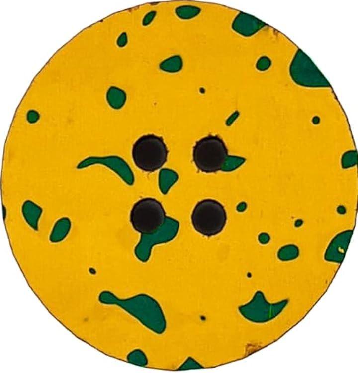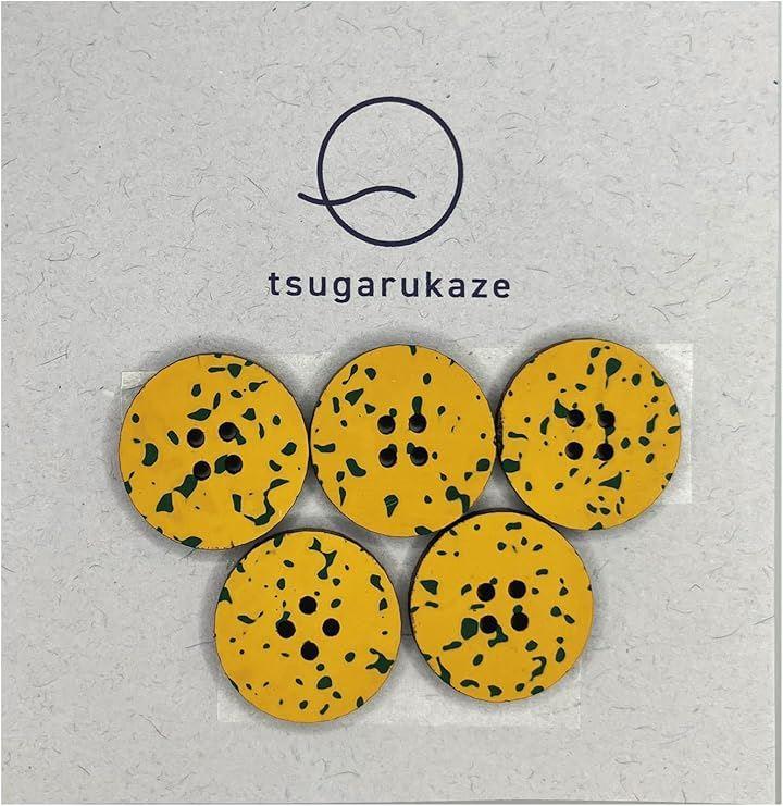 「津軽塗り唐塗仕上げ」黄色地に模様が入った高級ボタン5個セット|直径1.8cm・4つ穴、深い艶と独特の模様が魅力