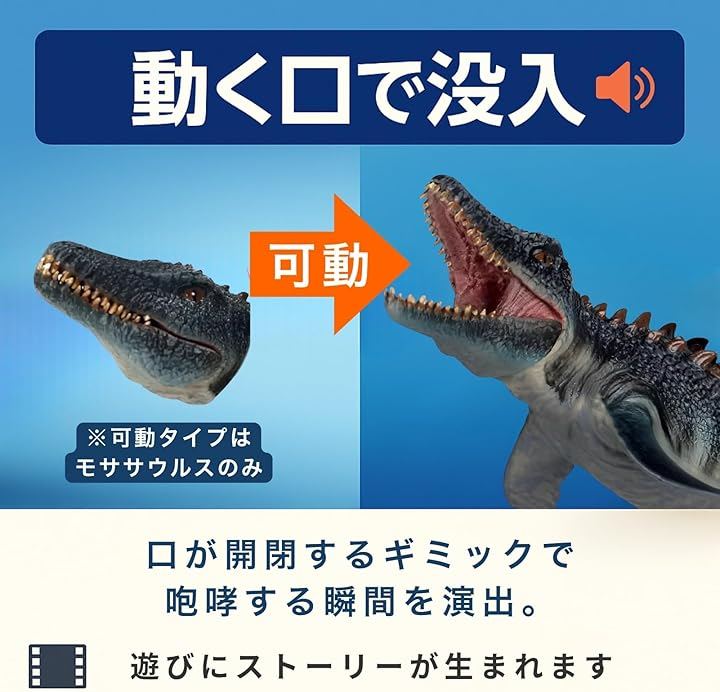 大きいサイズならではの大迫力があり、爬虫類の力強さや海の怪獣のような存在感を味わえます。