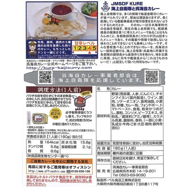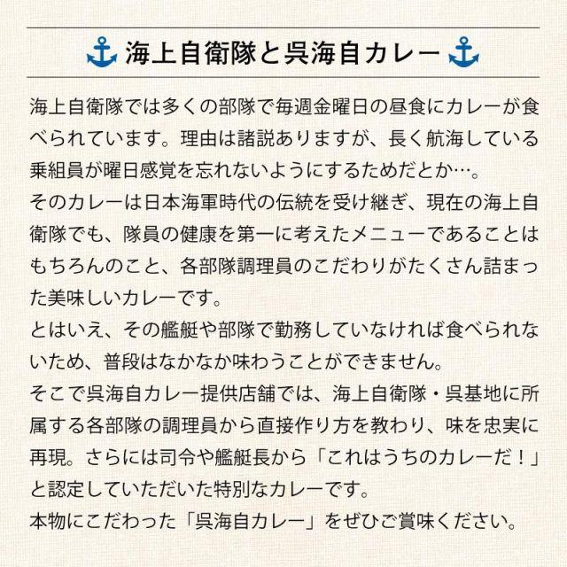 商品名:海上自衛隊 カレー レトルト 【 呉海自カレー ( 護衛艦さみだれ )】 非常食 詰め合わせ制作協力:海上自衛隊 呉地方総監部海上自衛隊呉基地・艦艇のカレーが味わえると人気の「呉海自カレー」が家でも気軽に味わえるようレトルトパウチになって登場。海上自衛隊の艦艇で食べられているカレーと同じ味をいつでも楽しめます。護衛艦さみだれのカレーは、牛肉、豚肉、鶏肉の3種類のお肉を使用したこだわりの一杯。お土産としても人気です。【甘辛レベル 4】内容量:180g(1人前)