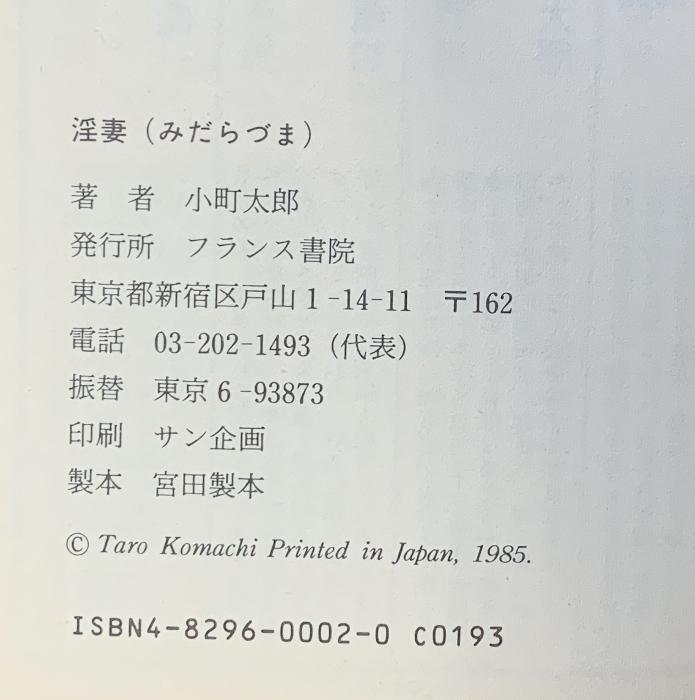 Lewd Wife (France Shoin Bunko) by Taro Komachi, published by France Shoin