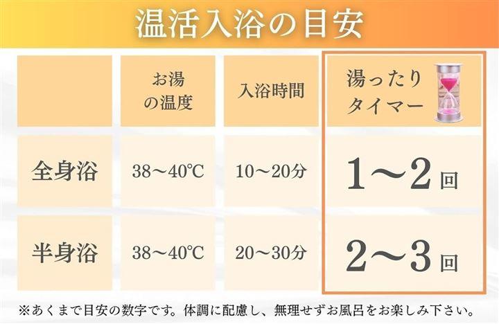 「入浴にオススメな10分設定」効果的な入浴の目安はお湯の温度が38~40℃、入浴時間が全身浴で10~20分、半身浴で20~30分となります。