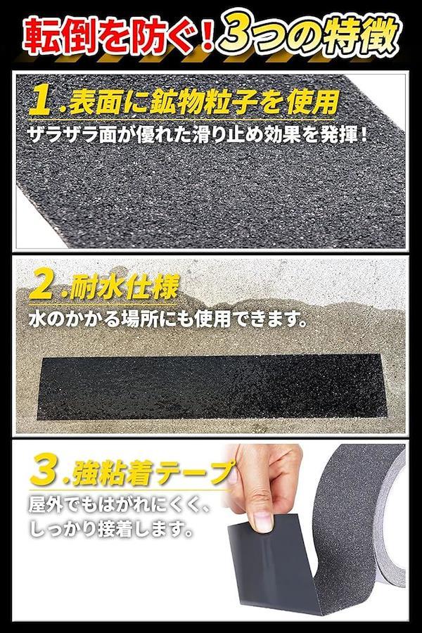 ノンスリップテープなどとも呼ばれ、表面に鉱物粒子を吹き付け滑り止め加工をした粘着テープです。