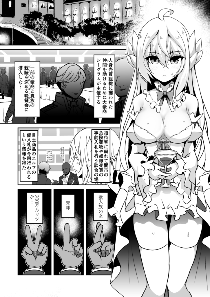 ※この商品は、制作サークル様の許可を得て代理販売しています。====================闇マーケット、人身売買や危険薬物の取引が行われる無法地帯。人身売買を生業とする組織の主力商品。それは、きめの細かい白い肌、透き通るような瞳、ツンとした長い耳を持つ種族。――エルフ。彼らは他種族との干渉を好まず見かけることすらも稀であり、老いること無く美しい容姿を保ち続ける。そのため、法外な価格が付けられ、取引されている。