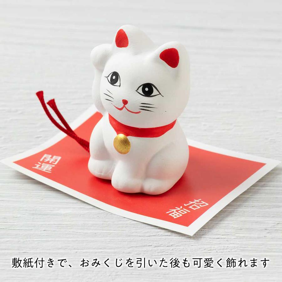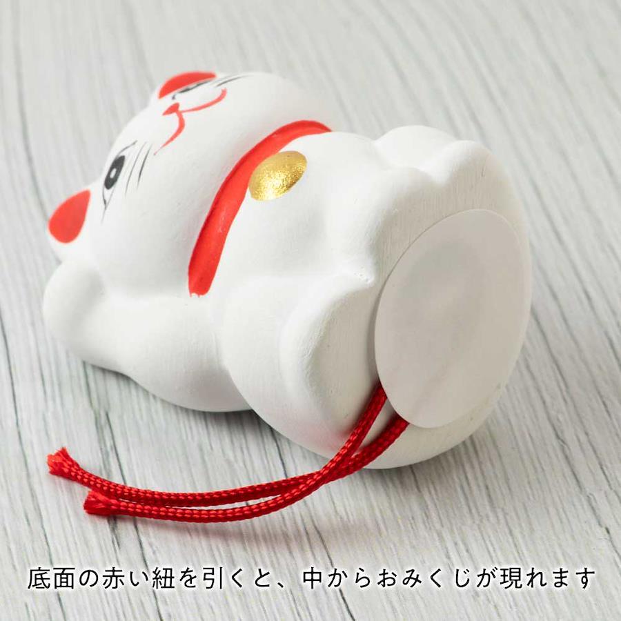 瀬戸焼のちょこんとかわいい縁起物。底面の赤い紐を引くと、中からおみくじが現れます。敷紙も付属していますので、おみくじを見た後も愛らしい置き飾りになりますよ。