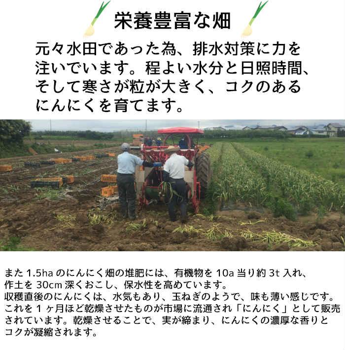 ●にんにく栽培40年以上の生産技術とにんにく専用貯蔵庫を完備して新鮮なにんにくを使用しています。