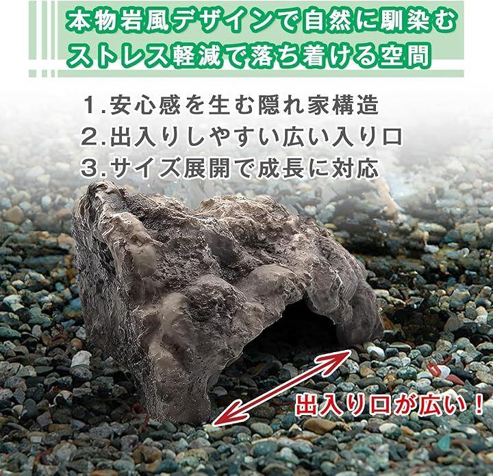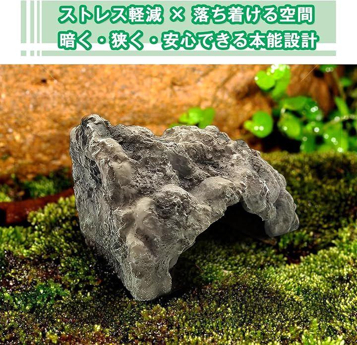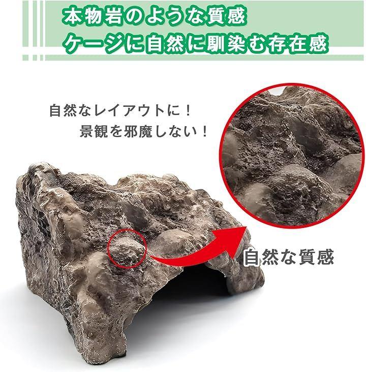 このロックシェルターは、天然の岩を模した重厚なデザインと、生体が落ち着ける内部構造。