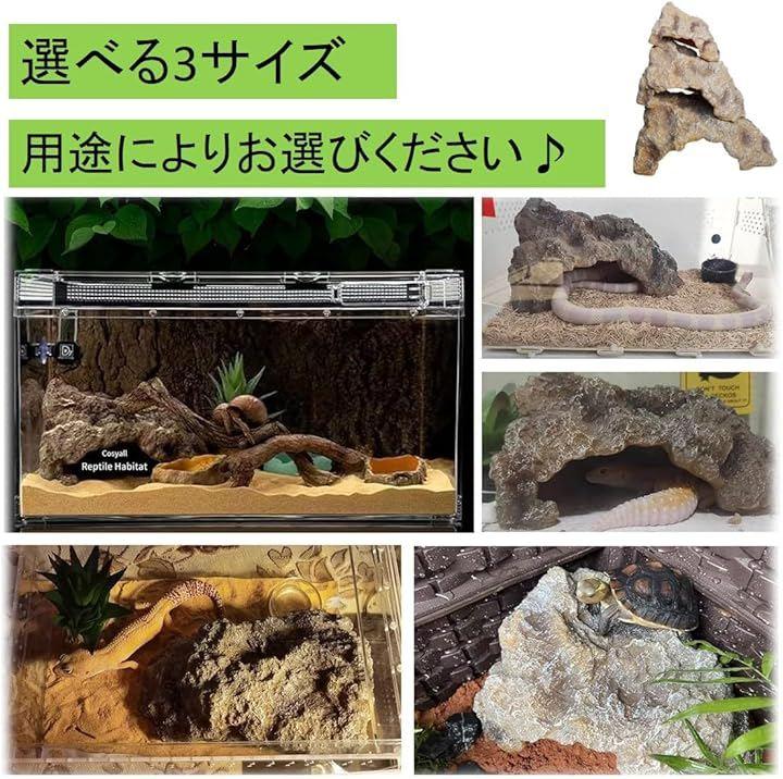 「選べる3サイズ」爬虫類シェルター 石 シェルター ロックシェルター オブジェ レイアウト素材 販売 。 隠れ家 として トカゲ 亀 カメ 両生類 カエル 蛇 タランチュラー クモ にお使いできます。