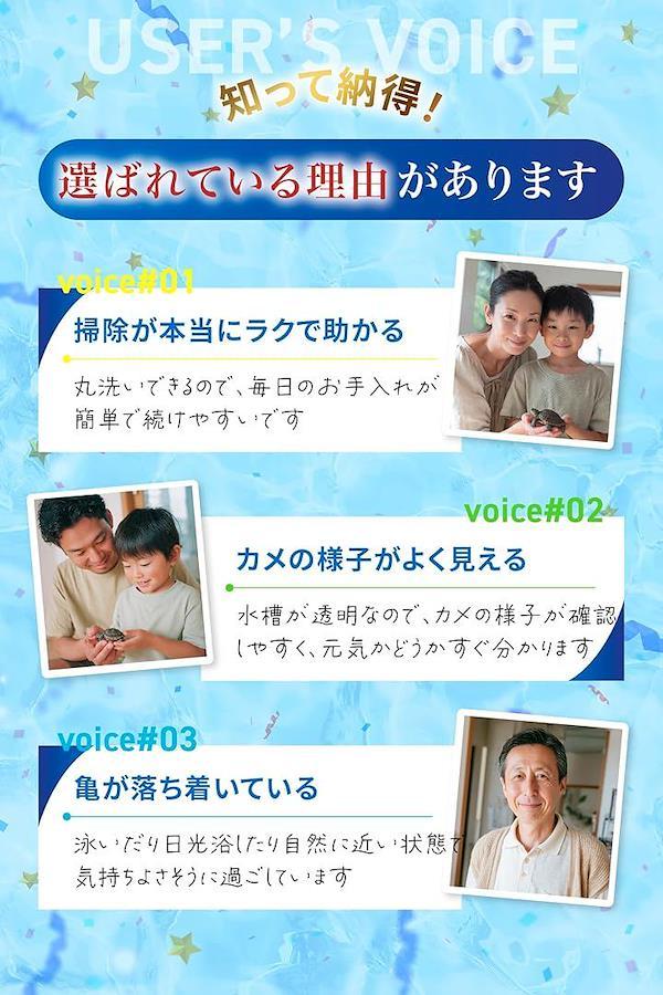 「自然に近い水陸構造」 遊泳・陸地・日光浴を一つにまとめた設計で、亀の本来の行動を妨げにくく、ストレスを抑えた飼育環境を実現します。
