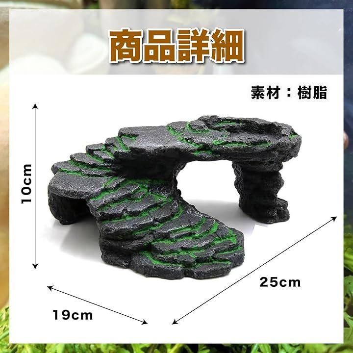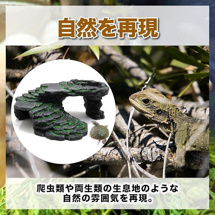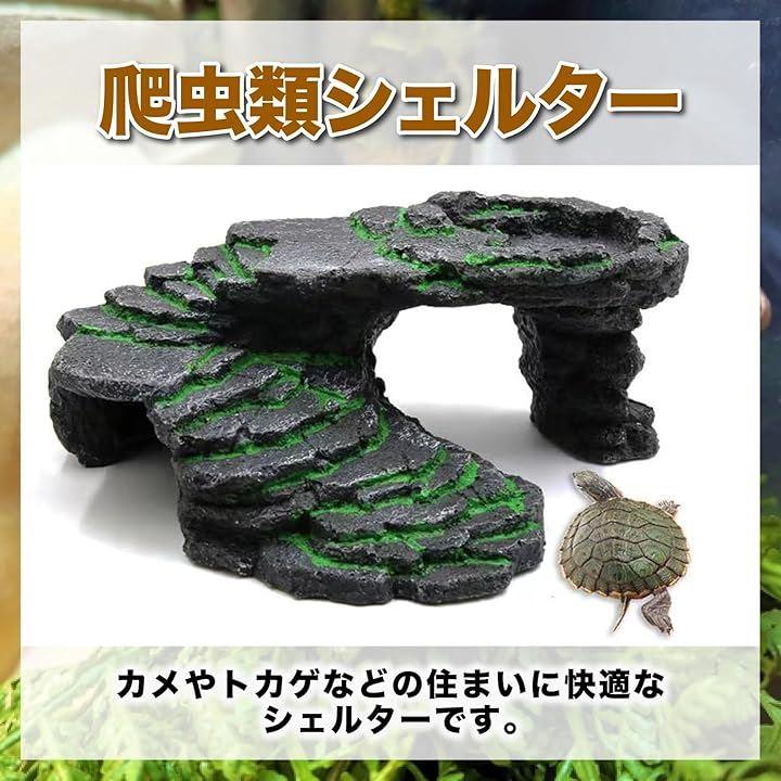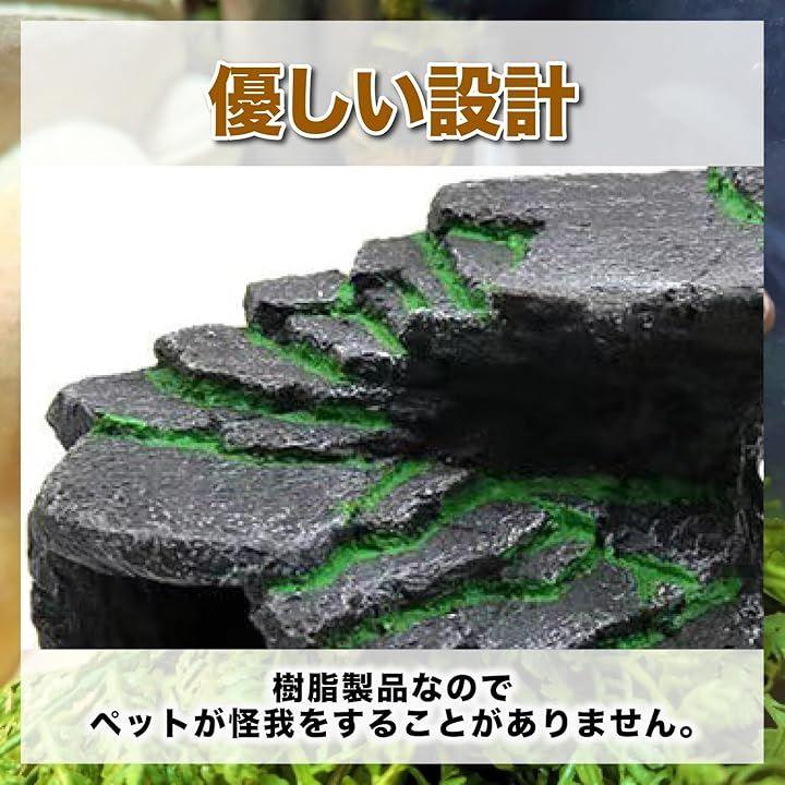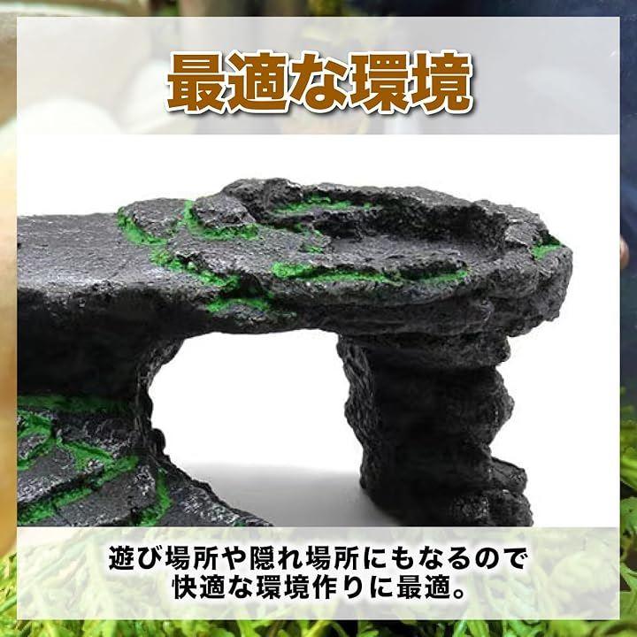 自然の岩を模したデザインが、飼育ケースや水槽内にリアルな陸地の雰囲気を演出し、ペットに快適で安心できるスペースを提供します。