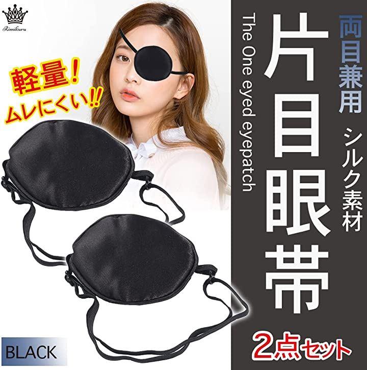 目の周りに圧力がかかりにくい右目と左目の両目使えるオシャレな片目用眼帯のセットになります。
