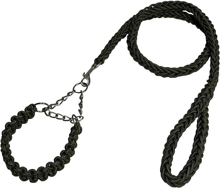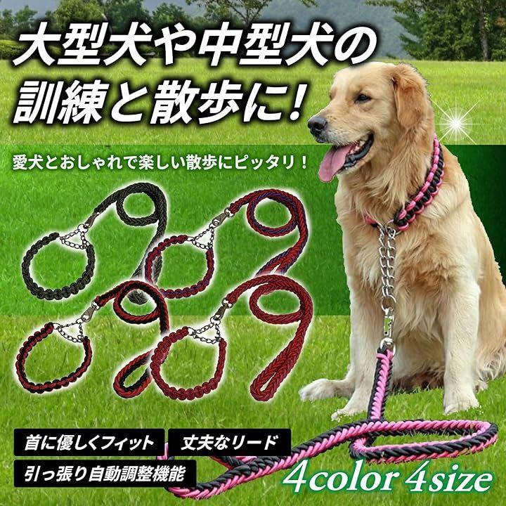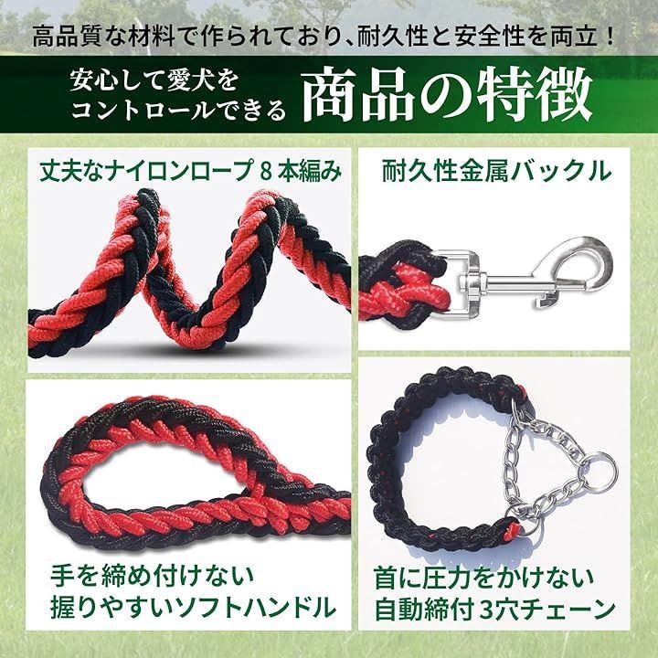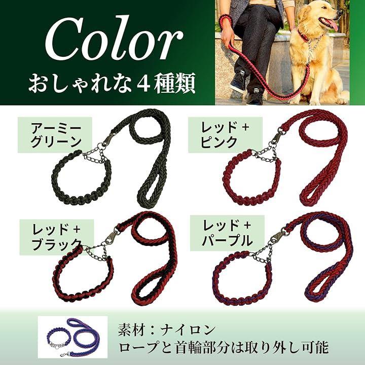 このパラコードリードは丈夫で軽量な8本のナイロンが編み込まれ、チョークチェーン首輪によりペットの引っ張りを効果的に防止します。
