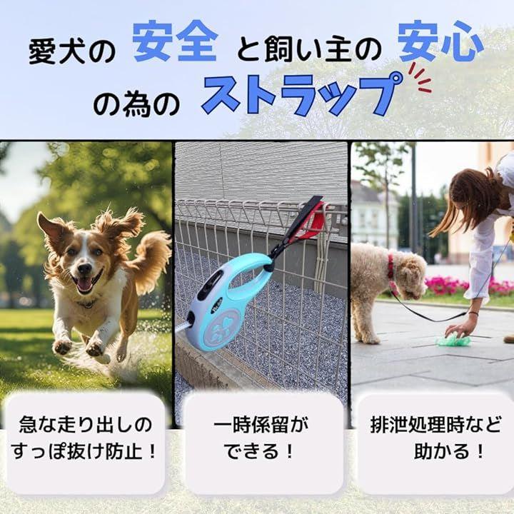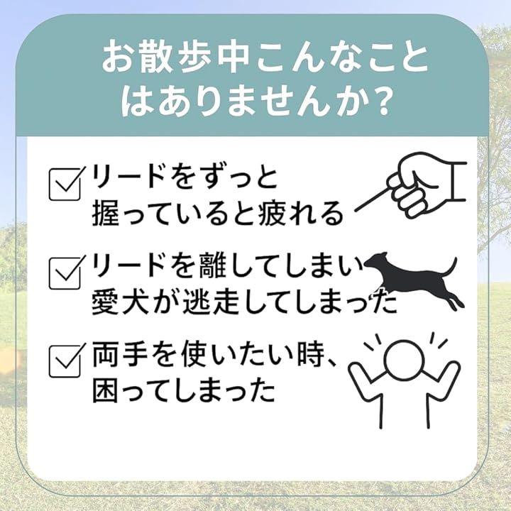 「脱落防止機能」飼い主の手からリードがすり抜けた場合でも、ストラップが手首に固定されていることでリードの落下を防ぎます。