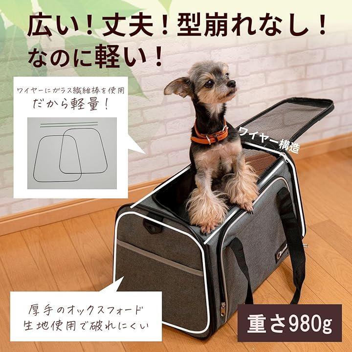 「軽い・丈夫・型崩れなし」ワイヤー構造により型崩れしないためペットキャリーバッグ内スペースを広く使用できわんちゃん、猫ちゃんもゆったりと過ごすことができます。